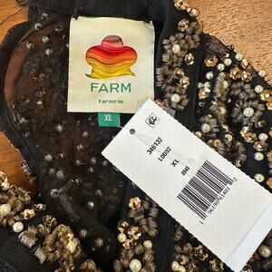 Farm Rio Black/Gold Embroidered Tulle Overlay Minidress, Concert, Party, XL NWT