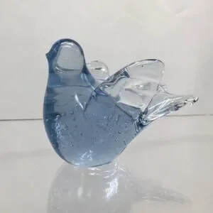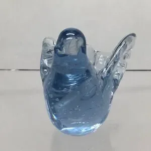 Fused Glass Art Controlled Bubbles Blue Bird Figurine