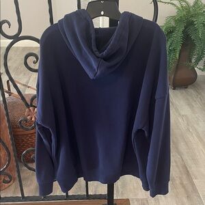Navy hoodie by Grayson Threads. Features bold red accents. Casual and stylish.