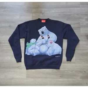 Vintage Coca-Cola Polar Bear Sweatshirt Medium Navy Crewneck 1995 90s