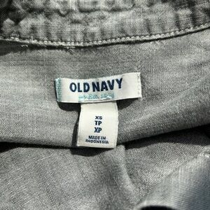 Chic gray denim shirt by Old Navy. Features a button-up design. 100% cotton material. Good quality coming from a smoke-free home.