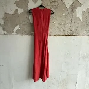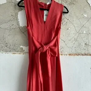 NWT Mango Sleeveless Red Tie Front Midi Dress Lightweight Linen Blend Size S