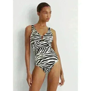 Lauren Ralph Lauren Womens 14 Zebra-Print Ring-Front One-Piece Swimsuit NWT $140