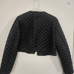 Zara Faux Leather Cropped Quilted Jacket