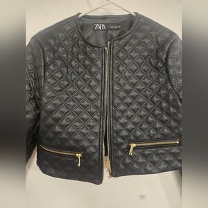 Zara Faux Leather Cropped Quilted Jacket Bloggers Favorite size xs like new