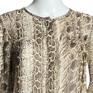 Ovi Shirt Womens Small Brown Cream Snake Print Button Front Blouse Sheer Edgy