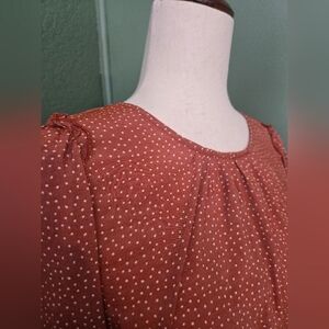 Size Large Lauren Conrad Burnt Umber Lace And Ruffle Trimmed 3/4 Sleeve Blouse