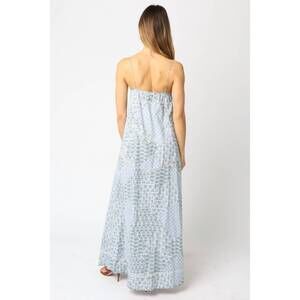 Embrace boho chic this summer with the Olivia Dress by OLIVACEOUS in a light blue hue. Crafted from 100% cotton, this woven dress features a shift silhouette with spaghetti straps and a scoop neckline. The tie closure ensures a secure fit, perfect for a beach day. Care is simple with machine wash instructions included.