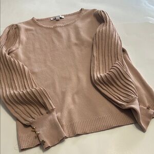 Women's long sleeve sweater . Light pink /gold thread in sleeves