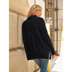 This oversized sweater is the ultimate wardrobe essential. Its relaxed silhouette, soft turtleneck, and ribbed cuffs that extend to the elbow offer a perfect blend of comfort and style. It pairs effortlessly with anything in your closet, from pants and dresses to leggings.