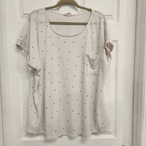 Chic and comfortable women's top featuring a stylish pocket and pink accents. Perfect for casual outings.