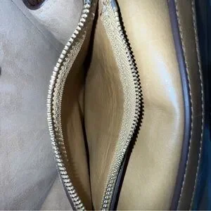 This Tory Burch Charlie bag is in great condition and comes with the dust bag + tags. This has only been worn a handful of times and has minimal signs of wear. *This is a natural grain leather that has markings and creases that are part of the leather grain, not user wear.* This bag can be worn as a shoulder or crossbody bag with the attached adjustable strap. The interior of the bag is real suede with 4 compartments, including one main area, 2 open slip pockets at the front and back, as well as a zipper compartment. Runway style bag from FW 2025. *Firm on price*