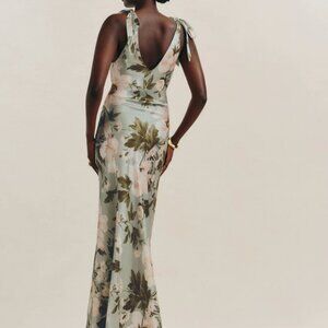 Reformation Pernille Silk Dress in Fauna Green and Pink, Size XL (12)