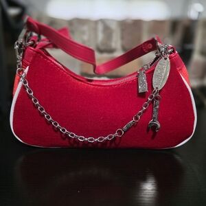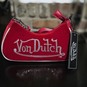 Von Dutch Red Velour Shoulder Bag