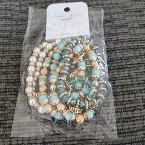 Gorgeous gold stretch charm bracelet set featuring a curated mix of love, angel wing, heart lock, and key charms. The stack blends turquoise acrylic beads, faceted turquoise glass beads, and cream pearl‑style beads for a chic boho‑meets‑romantic vibe.