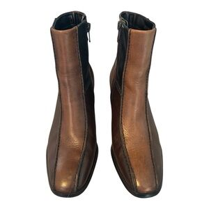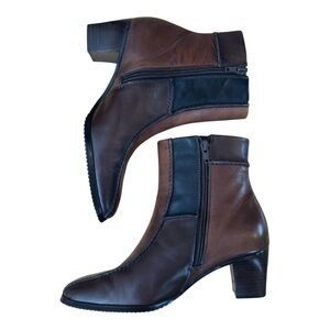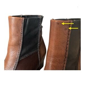Comfortable and stylish leather patchwork ankle boots with side zipper. Gently worn. See photos for areas with minor marks. Women’s size 6.5.