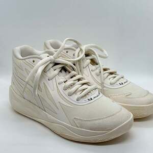 Step onto the court in style with these Puma MB.02 Whispers Frosted Ivory Black LaMelo Ball basketball shoes. Designed for performance and comfort, these sneakers feature a sleek frosted ivory and black colorway, making them a standout addition to any athletic wardrobe. Perfect for basketball enthusiasts and sneaker collectors alike.