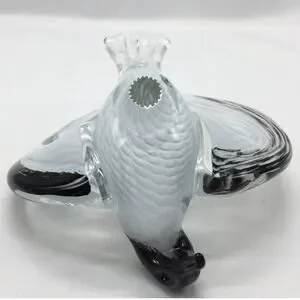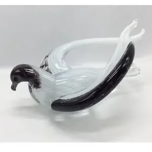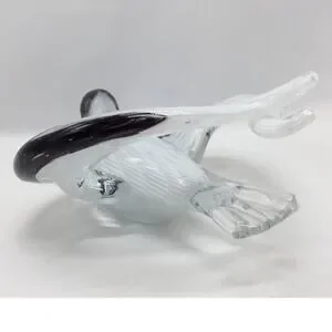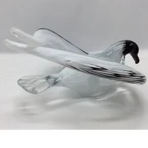 -Large beautiful glass sculpture blended black/white/clear glass with wings drawn back
