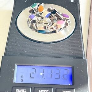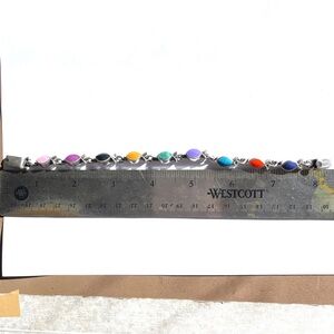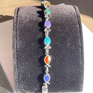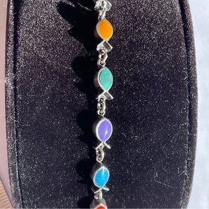 Colorful Vintage Taxco Gemstone 925 Silver Fish-shaped Bezel set Chain Bracelet