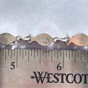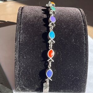 This vintage playful and colorful sterling silver fish shaped chain bracelet from Taxco will lift your mood any day you wear it. It will go with virtually anything you wear.