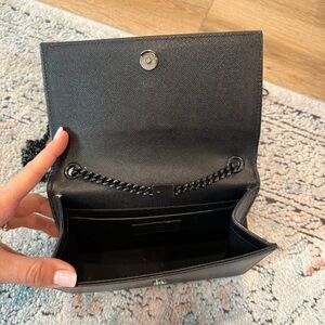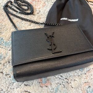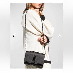 Saint Laurent Kate Small YSL Crossbody Bag In Grained Leather Black On Black