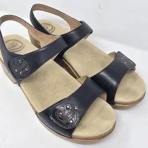 Dansko women eu 39 us 9 sonnet sandals shoes black leather strappy summer gorpcorp, slip on.