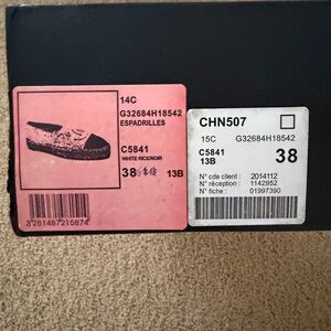Elegant CHANEL espadrilles with a timeless black and white design. Perfect for adding a touch of luxury to any outfit.