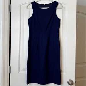 Chic navy midi dress by Theory. Sleeveless design with a tailored fit. Ideal for versatile styling.