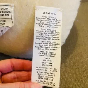 WEST ELM 100% Wool Embroidered and Sequin Cay Pillow Figure