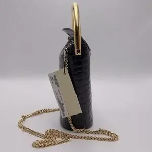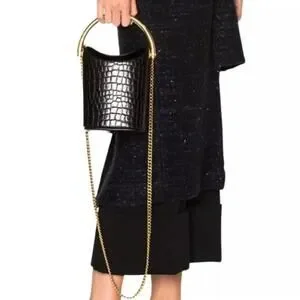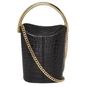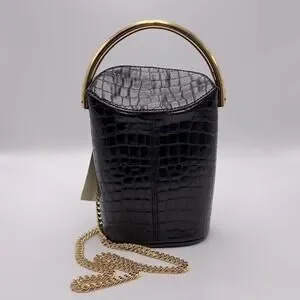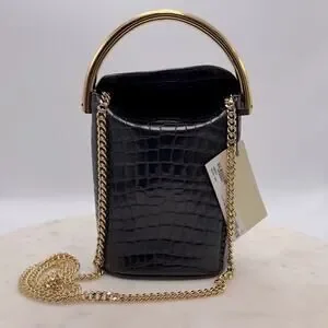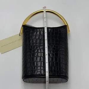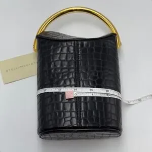 New Stella McCartney Black Croc Embossed Bucket Bag Gold Handle W/ Dust Bag