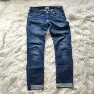 Approximate measurements waist is 15.5” across, rise is 8.5”, inseam is 27.5” and leg opening is 6.75” GUC