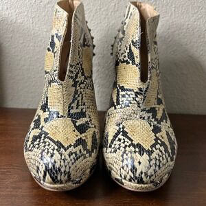 BCBGMAXAZRIA Booties Size 9 Daria Snakeskin Print Studded Heel Leather Womens