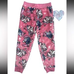 Disney Stitch Girls Plush Pajama Pants Size 4/5 Pink Cozy NWT