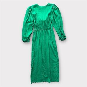 Size M Young Fabulous Broke Linen Caza Midi Long Sleeve Green Dress