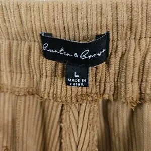 Hunter & Brown Tan Corduroy High Rise Pants Pockets Elastic Waist Size Large