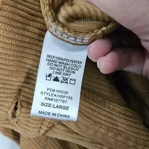 Hunter & Brown Tan Corduroy High Rise Pants Pockets Elastic Waist Size Large, 100% Polyester, Elastic Waist in Back, Front Zip, Front and Back Pockets, Excellent condition!
