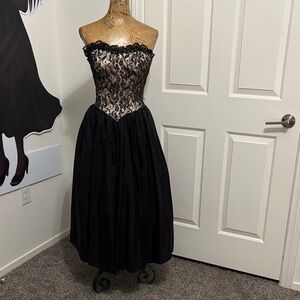 Gunne Sax Jessica McClintock strapless Dress sexy midi gown prom taffeta 5 VTG