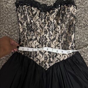 Gunne Sax Jessica McClintock strapless Dress sexy midi gown prom taffeta 5 VTG XS/S. View ruler measurements for sizing.