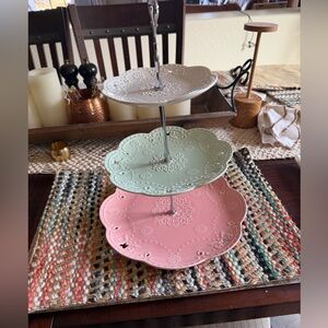 Tiered dessert platter pastels