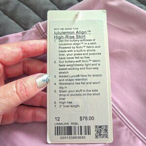 NWT Lululemon Align High-Rise Skirt - 12 Rose Blush
