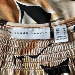 SUSAN GRAVER Scoop Neck Floral Brown & Cream Liquid Knit Popover Tunic Top Med