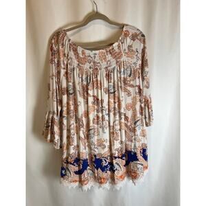 Cato EST 1946 Blue Orange Jersey Peasant Top Lace Edging Ruffle Sleeve Sz 14/ 18