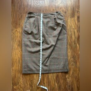 Elegant plaid skirt set by Pendleton. Features a classic brown pattern. Perfect for professional or casual wear.