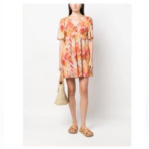 BA&SH Aelda Mini Dress Abstract Print Ochre Women US Sz 6