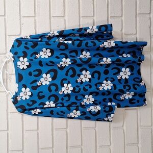 Blue Floral Leopard Print 3/4 Sleeve Tunic. Size XL NWOT