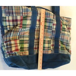 Vtg Y2K J Crew Madras Plaid Patchwork Tote Bag Preppy Coastal Beach Summer