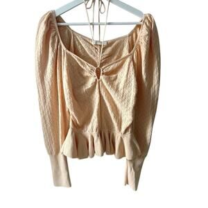 Ulla Johnson Leland Puff Sleeve Peplum Halter Top Honey Peach
