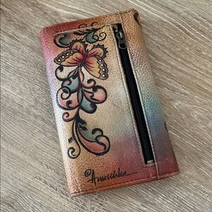 Anuschka Hand Painted Artistic Butterfly & Flowers Wallet