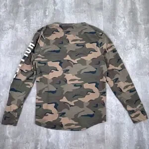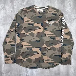 Hollister Camo Long Sleeve Shirt Mens Medium Green Logo Pullover Casual