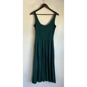 Stretchy and soft dark green tencel and spandex. Fitted waist and bust. Notched neckline. Pockets. Midi skirt that flares out with lots of movement. Light wear no flaws excellent condition. Women's size large.